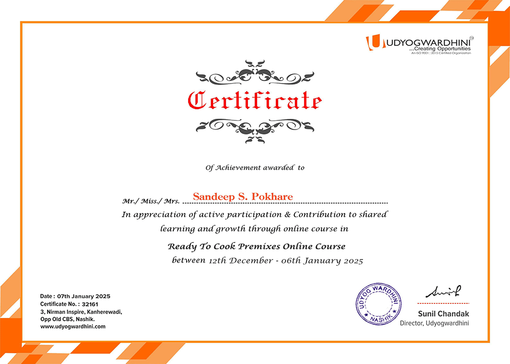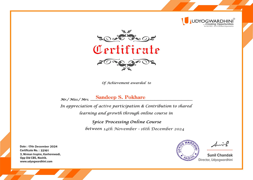 Spice Board Certificate