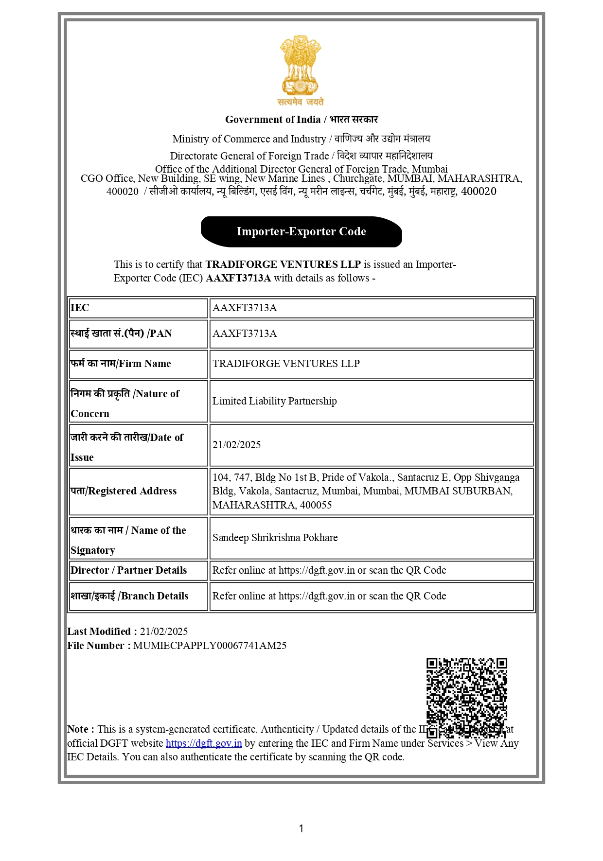StartUp India Certificate